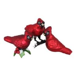 3ct Vibrantly Colored Birds With Holly Berries Christmas Ornaments 5″