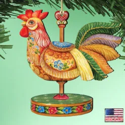 Set Of 2 Rooster Carousel Wooden Christmas Ornaments 5.5″