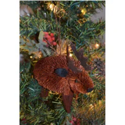 6” Brown And Black Bristle Brush Handcrafted Moose Hanging Figurine Ornament