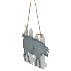 7″ Country Rustic Pig And White Picket Fence Christmas Ornament