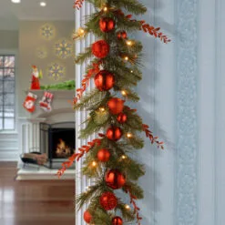 9′ X 12″ Pre-Lit B/O LED Red Mixed Artificial Christmas Garland – Warm White Lights