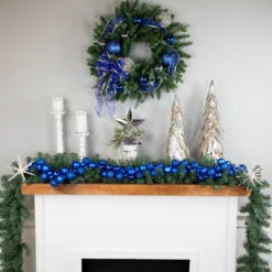 6′ Blue Shatterproof Ball 3-Finish Christmas Garland