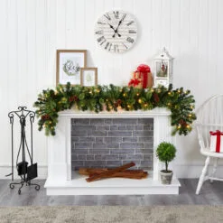 12′ X 14″ Pre-Lit Woodland Berry Artificial Christmas Garland, LED Lights