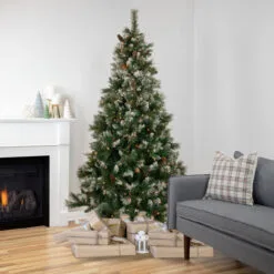 6.5′ Pre-lit Snow Valley Pine Artificial Christmas Tree, Clear Lights
