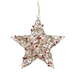 18″ Lighted Champagne Gold Glittered Rattan Berry Hanging Star Christmas Window Decoration