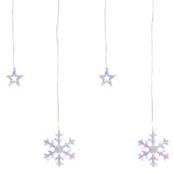 250 Multi-Color LED Star And Snowflake Window Curtain Christmas Lights – 16ft Clear Wire