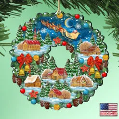 Set Of 2 Nutcracker’s Gift Wreath Wooden Christmas Ornaments 5.5″