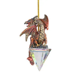 Ornament features a dragon sitting on an artificial crystal glass diamond