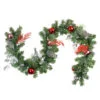 Accented with frosted and flocked foliage, frosted pinecones and red berries