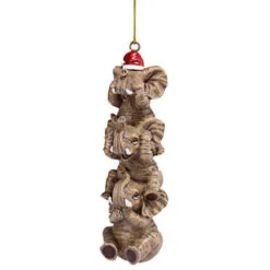Ornament heralds the three truths of the man with elephant trunks lifted high for luck and a Santa hat