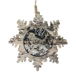 Snowflake design lit from behind by a warm white light