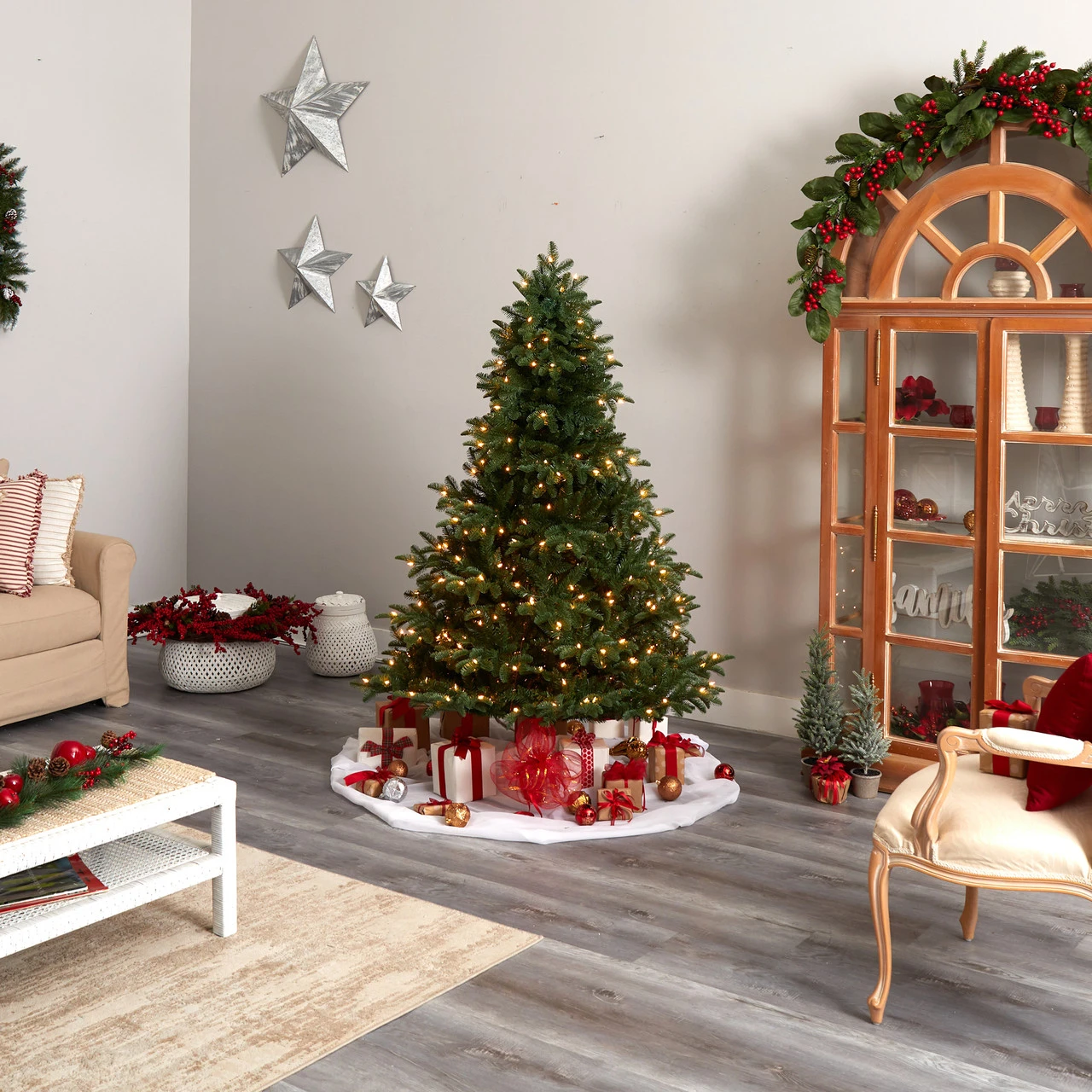 Pre-lit with 400 warm white LED lights