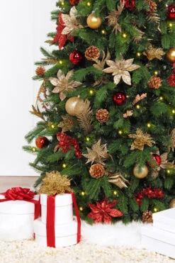 Dimensions: 7.5′ high (from the base of the stand to the top of the tree)