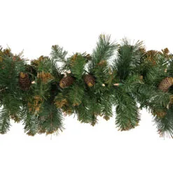 Accented with pine cones and lightly dusted gold sparkling glitter