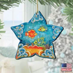 Ornaments depict a starfish with fishes and a snail shown in its body