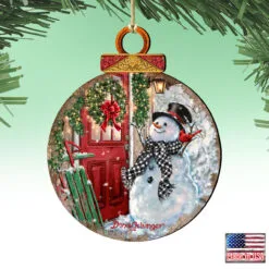Ornaments depict depict a snowman welcoming the arrival of the winter season