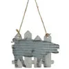 Ornaments depict Santa Claus with flower design gloves that hold a white tiger
