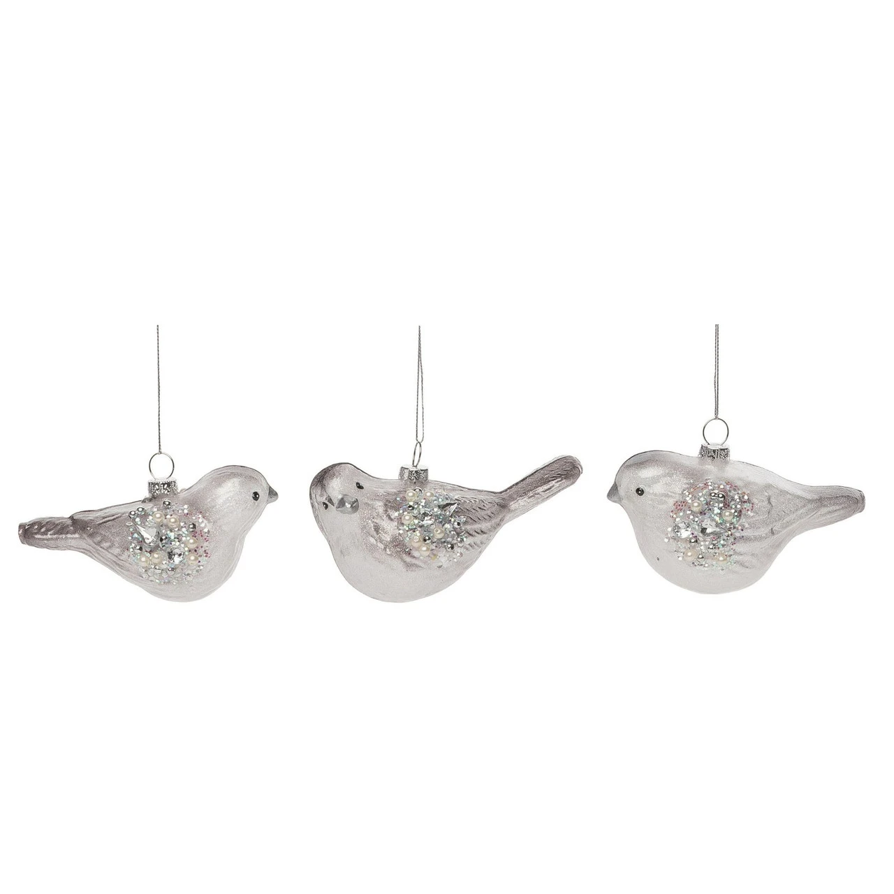 Silver bird ornaments